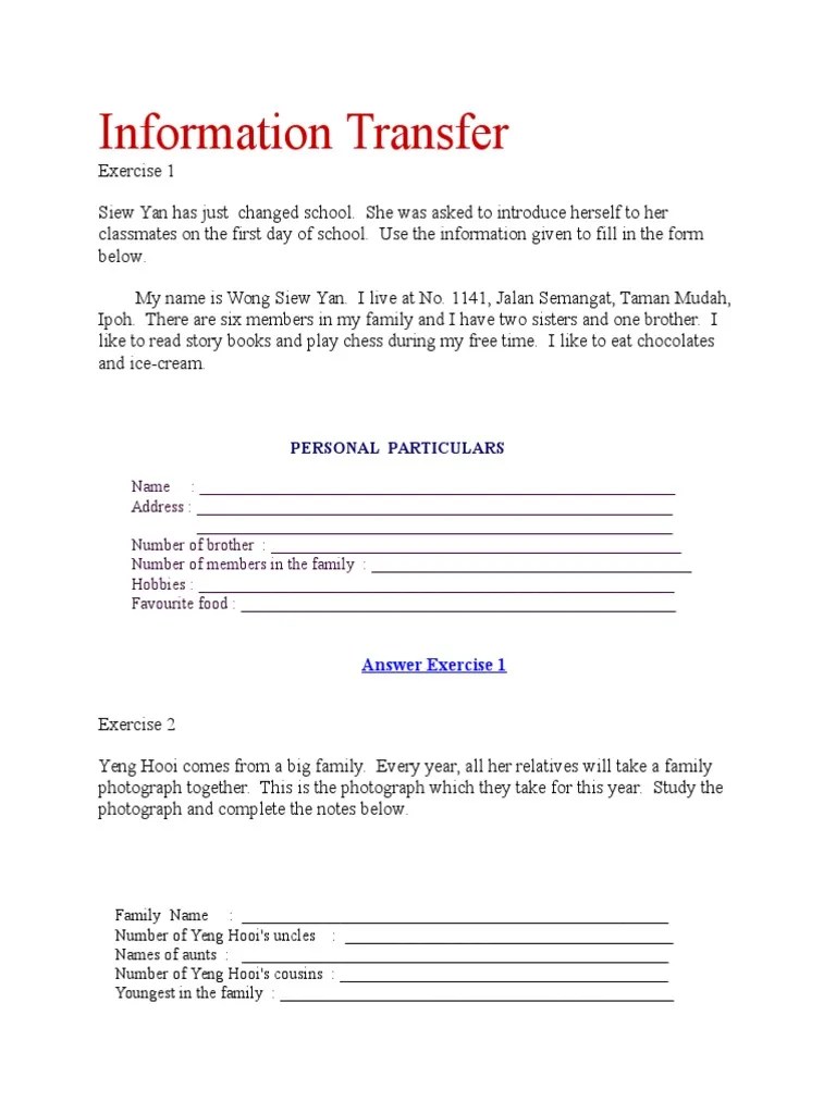 Students must understand the passage and in turn, transfer the information . Information transfer techniques in the teaching of reading and listening in foreign language and english as a second language classrooms are discussed. English module for upsr complete notes exercises for paper 1 paper 2 free download mykssr com. You can do the exercises online or download the worksheet as pdf.